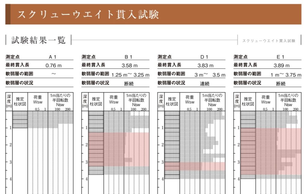 - 1mごとに地盤の強度がわかる