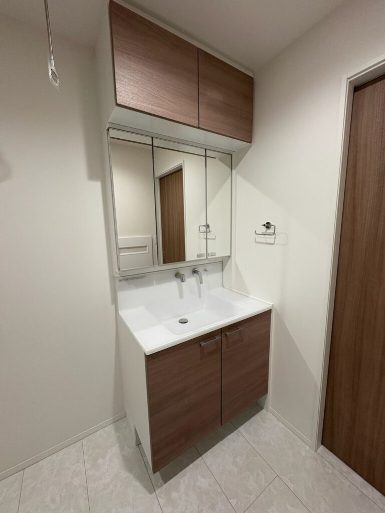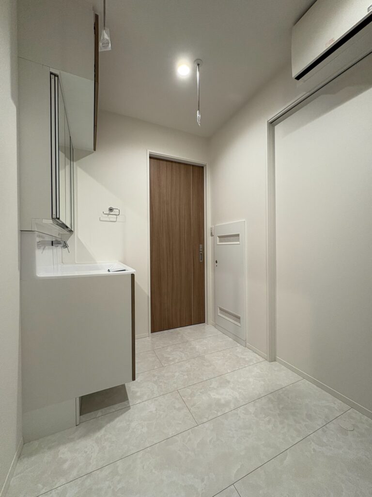 ここが広いと、朝の渋滞(洗面台渋滞)が減ります。「洗面脱衣室広い=人生の余裕」って、引き渡し後に気づきました。朝のイライラが8割減。